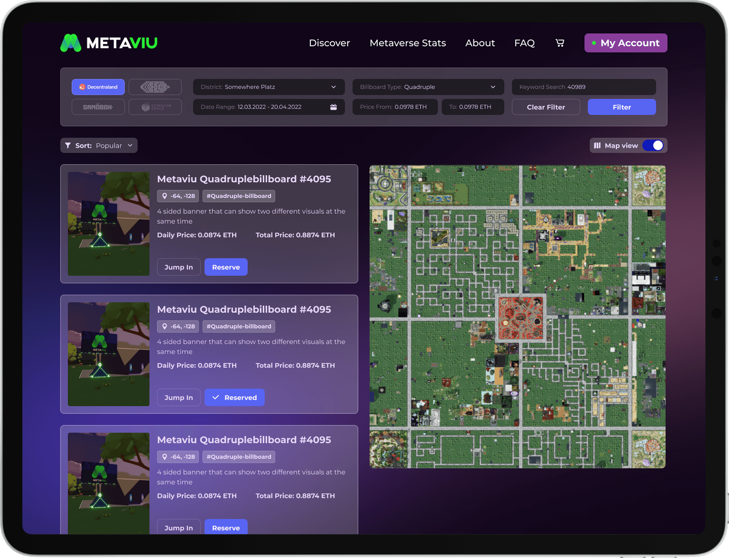 Designing an ad management platform for virtual landowners and brands for Web3.0