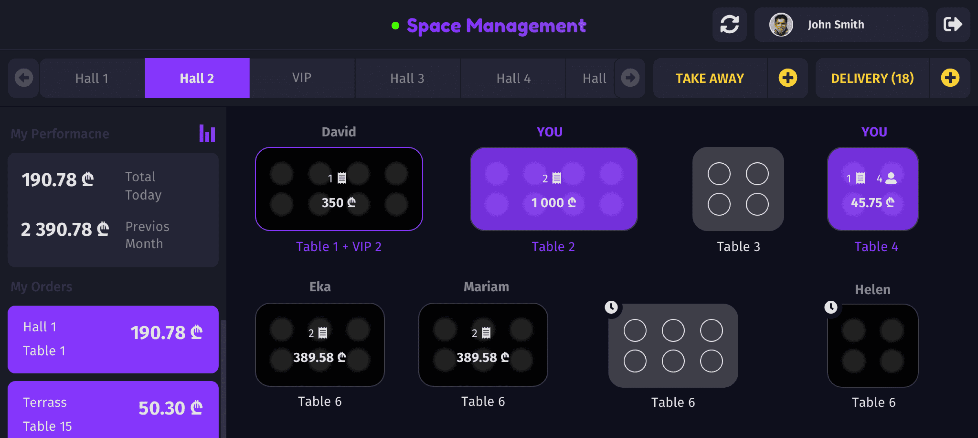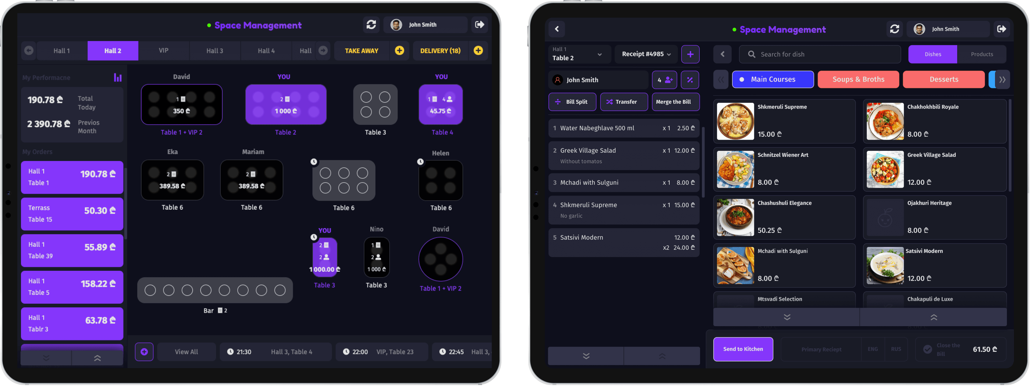 The entire restaurant management system (spacem.ge) covering everything from ingredients, inventory to orders, delivery, bill splitting, merging and table management.