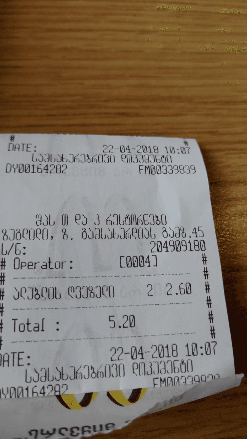 4 years later in Sighnaghi, I recognised a receipt design in a small tourist cafe.
